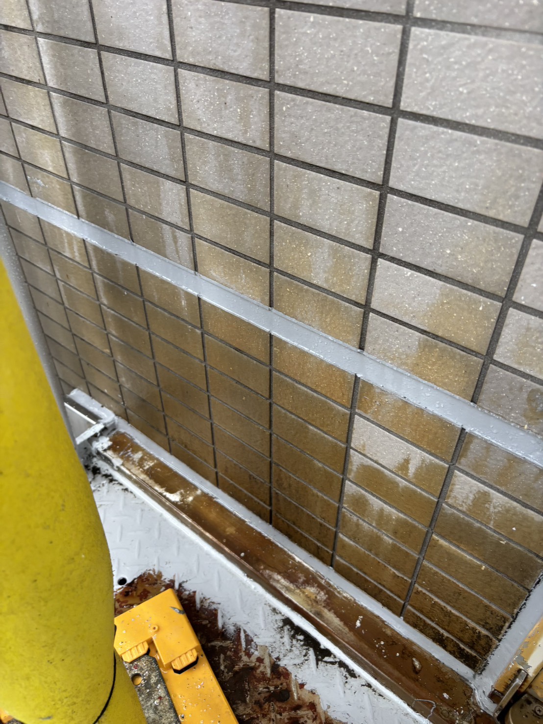 外部タイルの薬品洗浄を行いました。